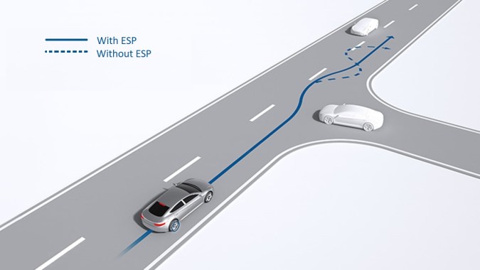El propósito de ESP es monitorear constantemente el ángulo del volante en relación con la dirección real de viaje; midiendo la velocidad de rueda individual, el ángulo de guiñada y el ángulo de dirección 25 veces por segundo. Al hacerlo, ESP ayuda a compensar los errores del conductor que, de lo contrario, afectarían la dinámica lateral; mientras que los sistemas de control de tracción y ABS hacen lo mismo para la dinámica longitudinal.